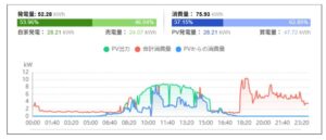 2024年度の年間発電量は12,970kWhに達し、クラブハウスで消費される電力の大部分を賄っています。これは一般家庭(4人世帯)の年間電力消費量約4,000kWhの約3.2世帯分に相当する水準で、年間約5.72トンのCO₂削減効果となり施設単体でのCO₂削減にも貢献しています。